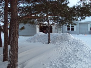 Big snow mound by our garage